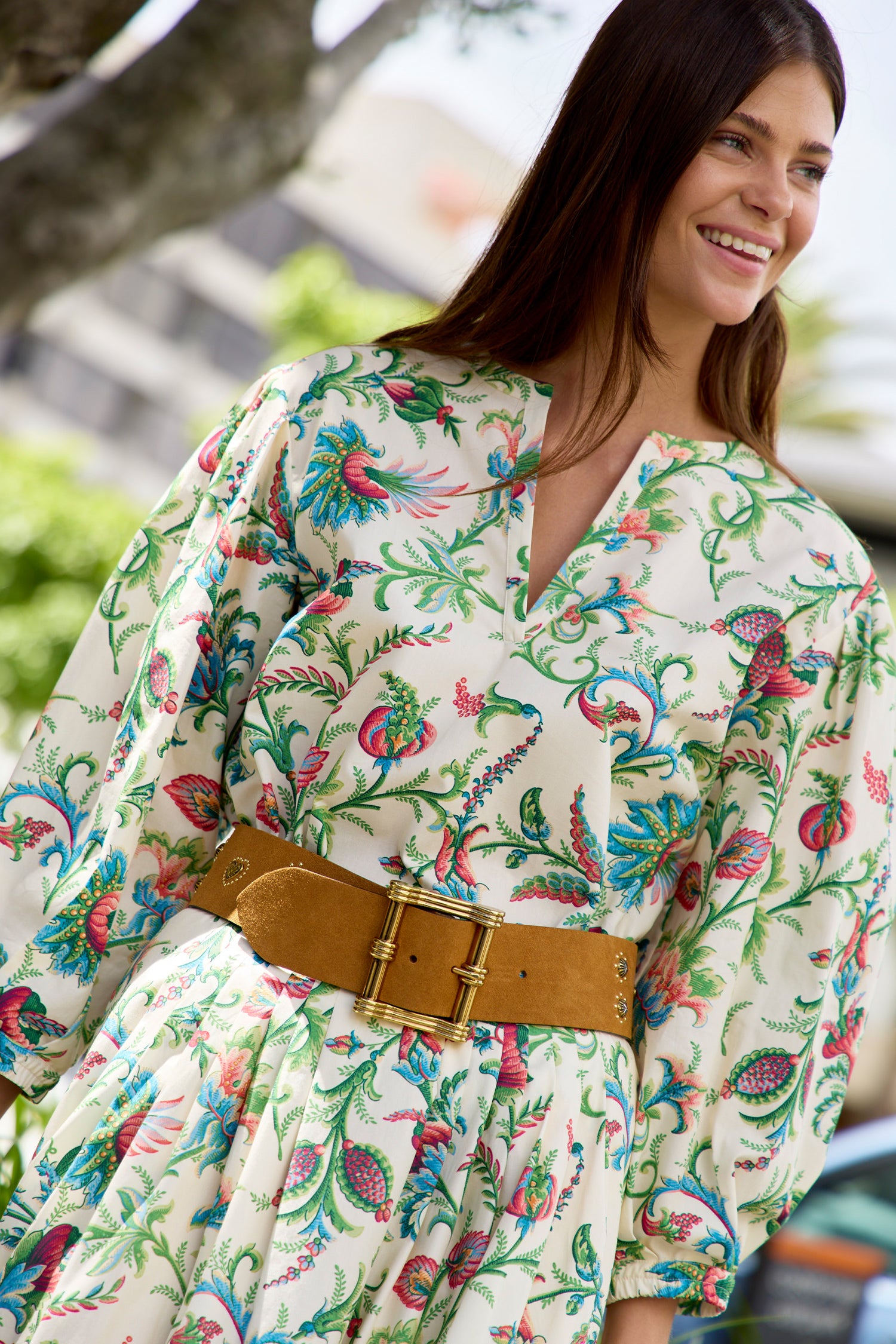 - Loose-fitting three-quarter length puff sleeves