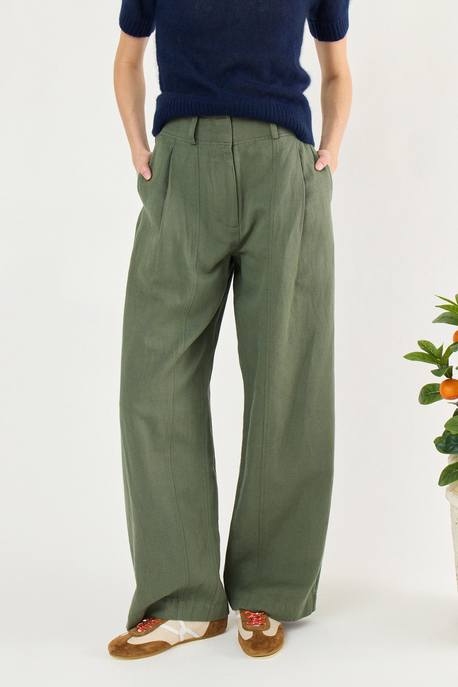 - Single front pleats