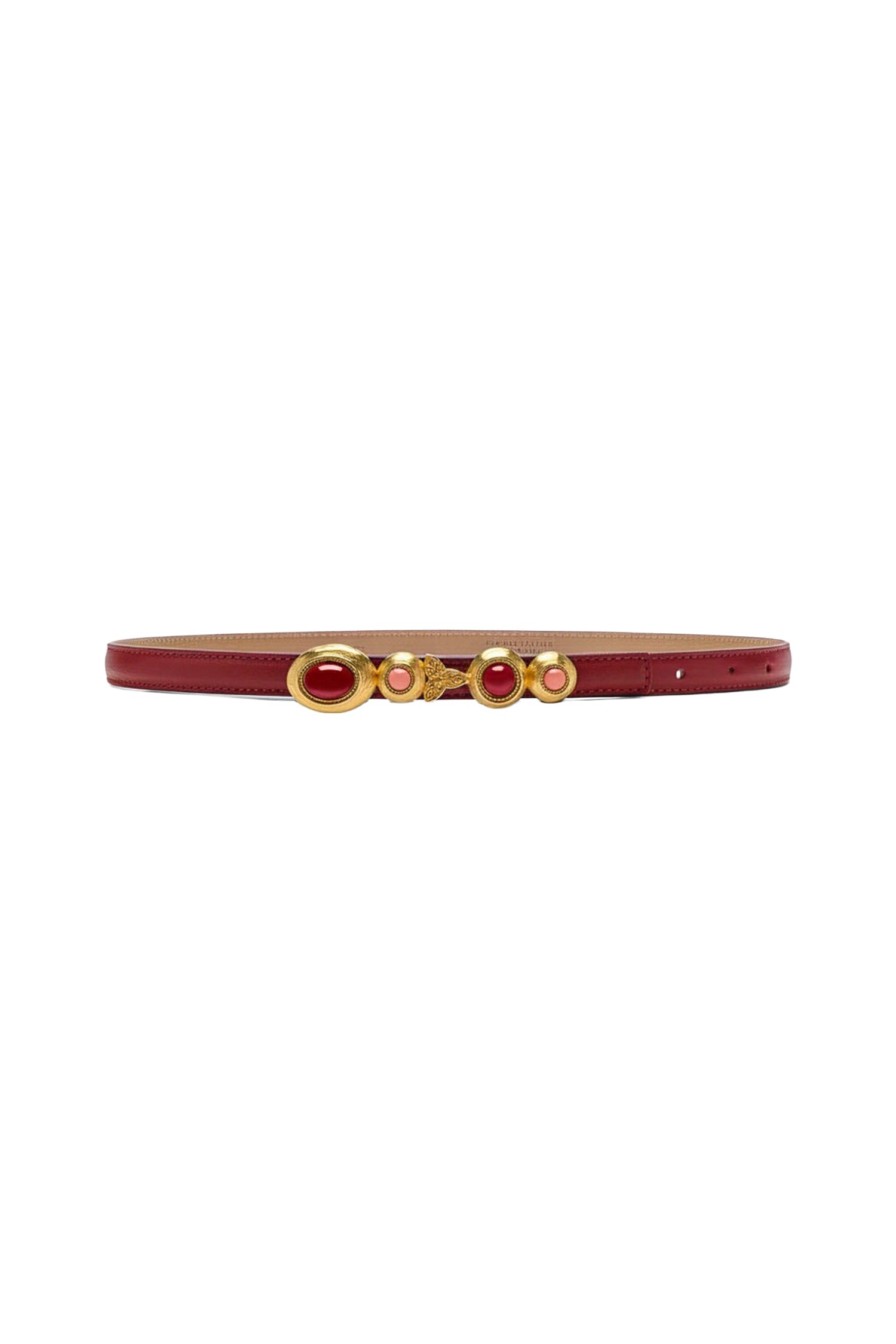 - Collection of coral and carnelian coloured stones set within spherical golden borders
