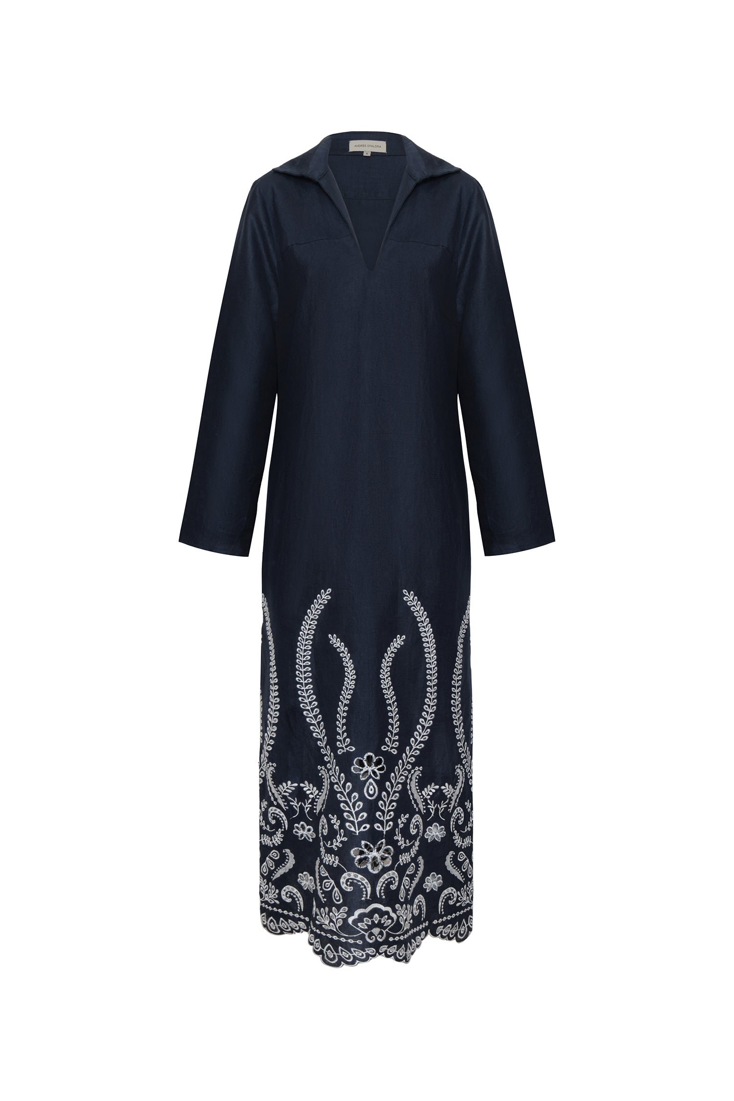 - Made in navy eyelet linen