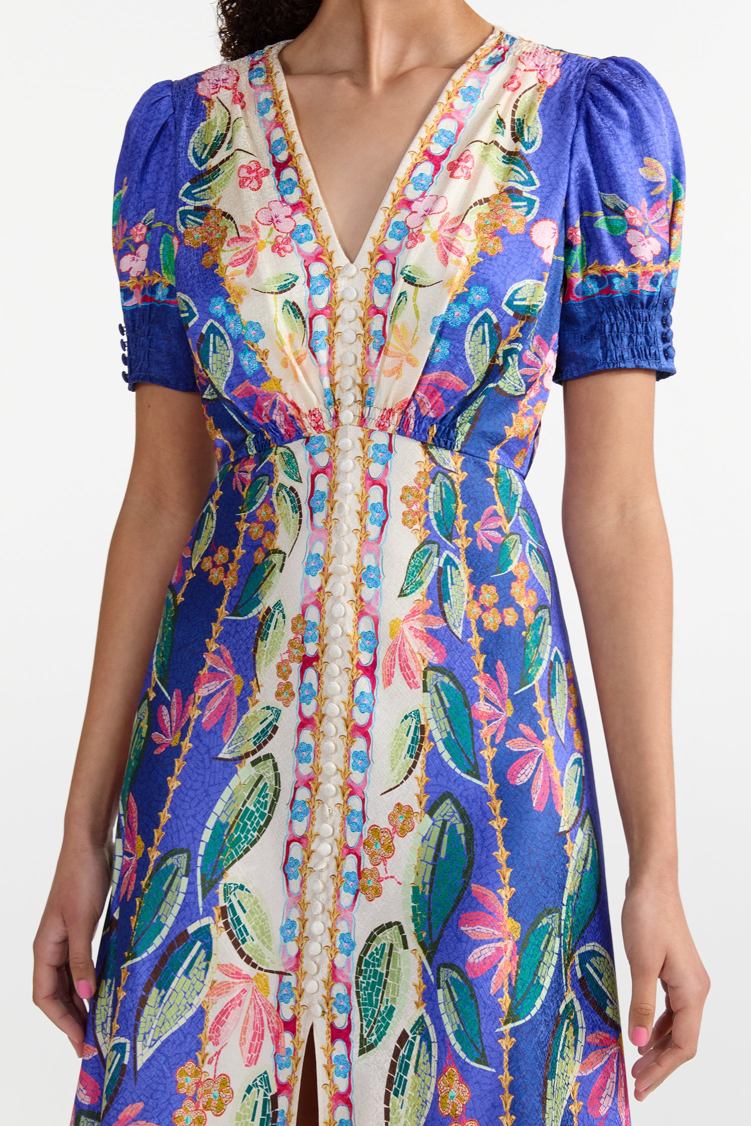 - Stamped satin midi-length dress