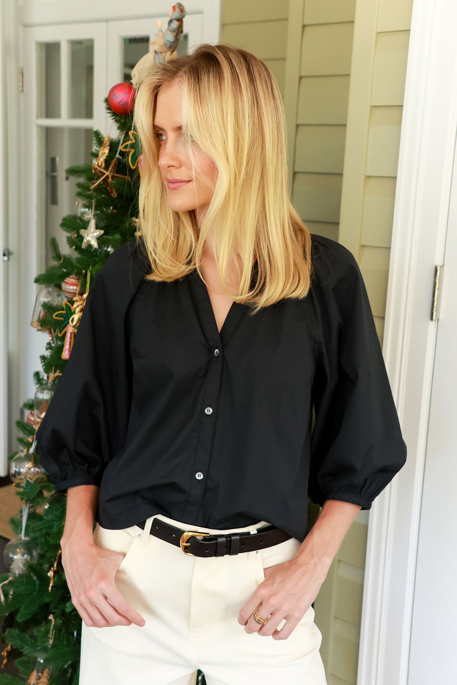 - 3/4 puffed sleeves