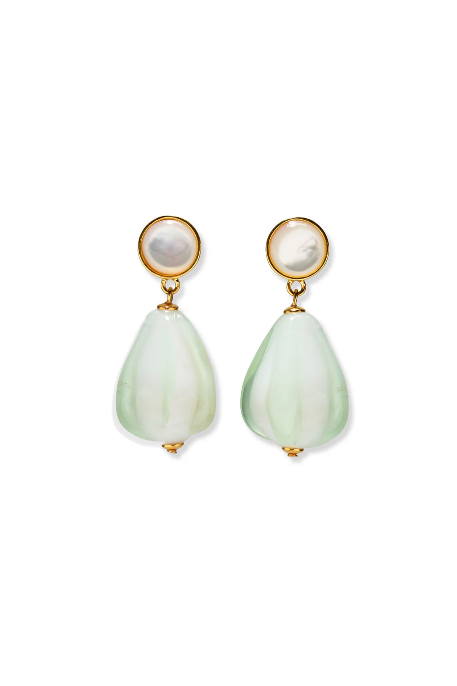 - Gold-plated brass, mother-of-pearl tops, glass