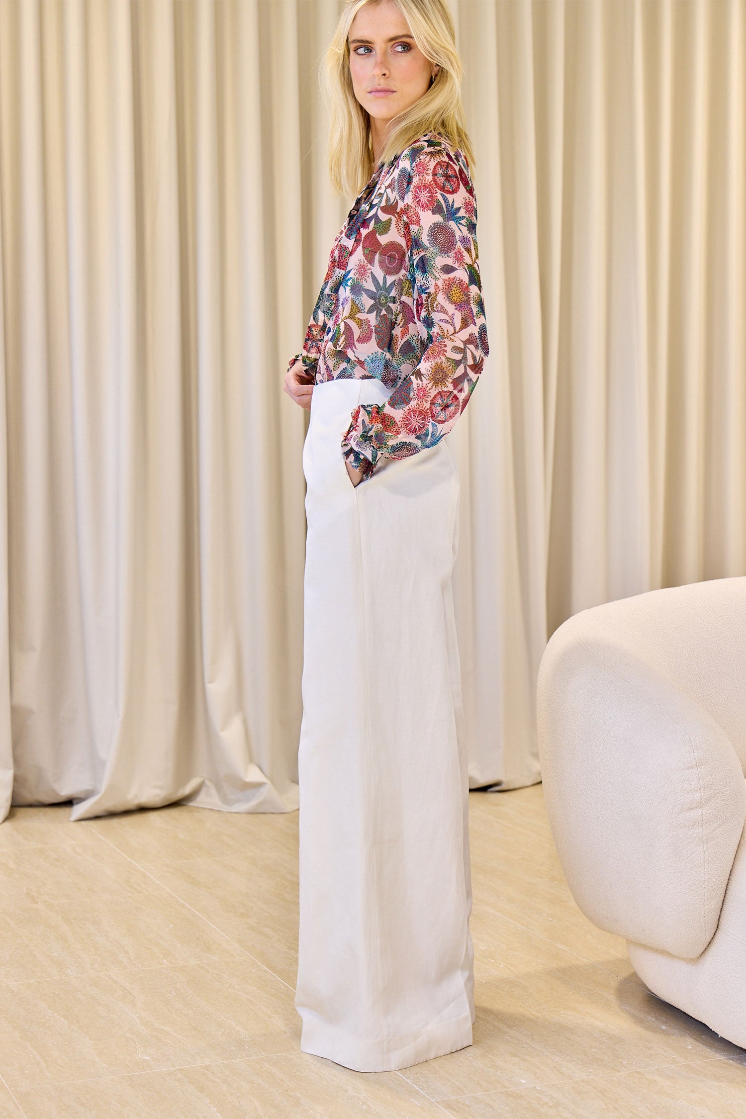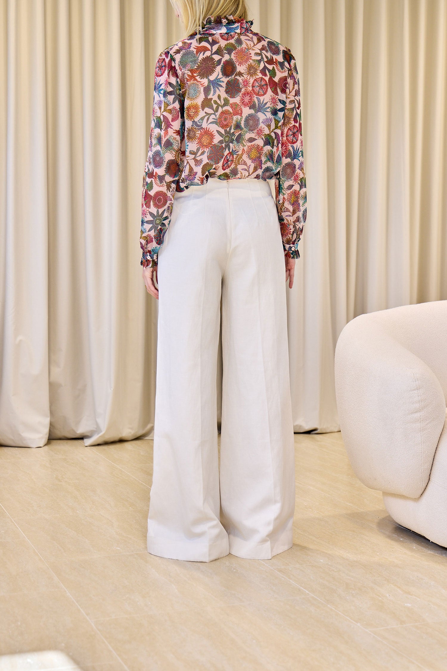 - Cream cotton, linen and silk-blend twill